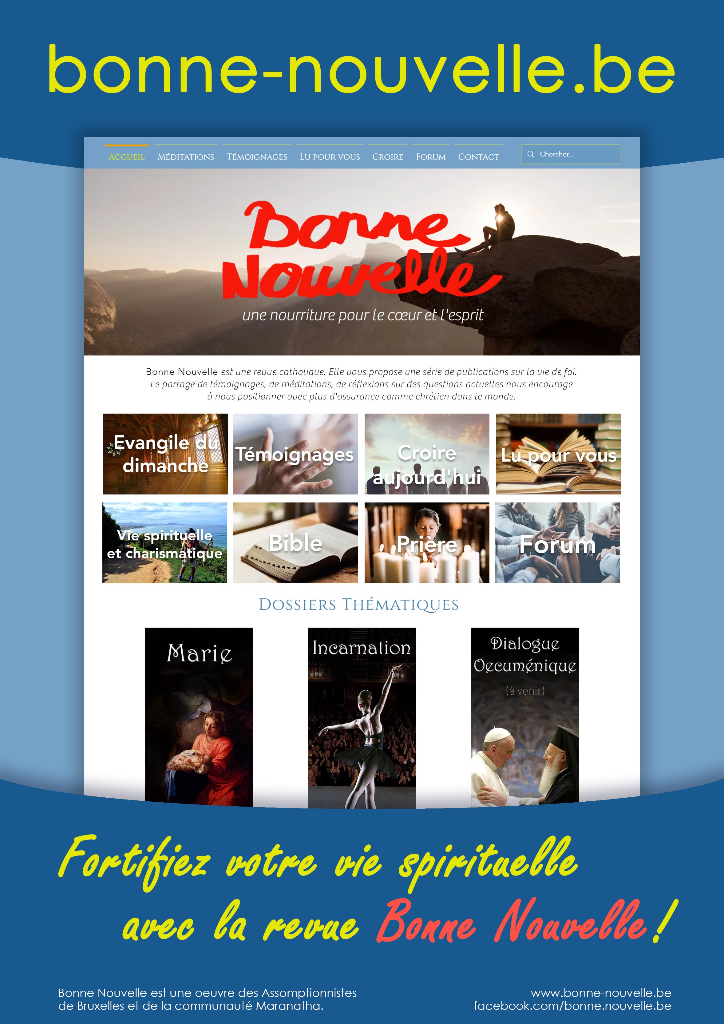 . Bonne Nouvelle est une revue catholique. Elle vous propose une série de publications sur la vie de foi. Le partage de témoignages, de méditations, de réflexions sur des questions actuelles…